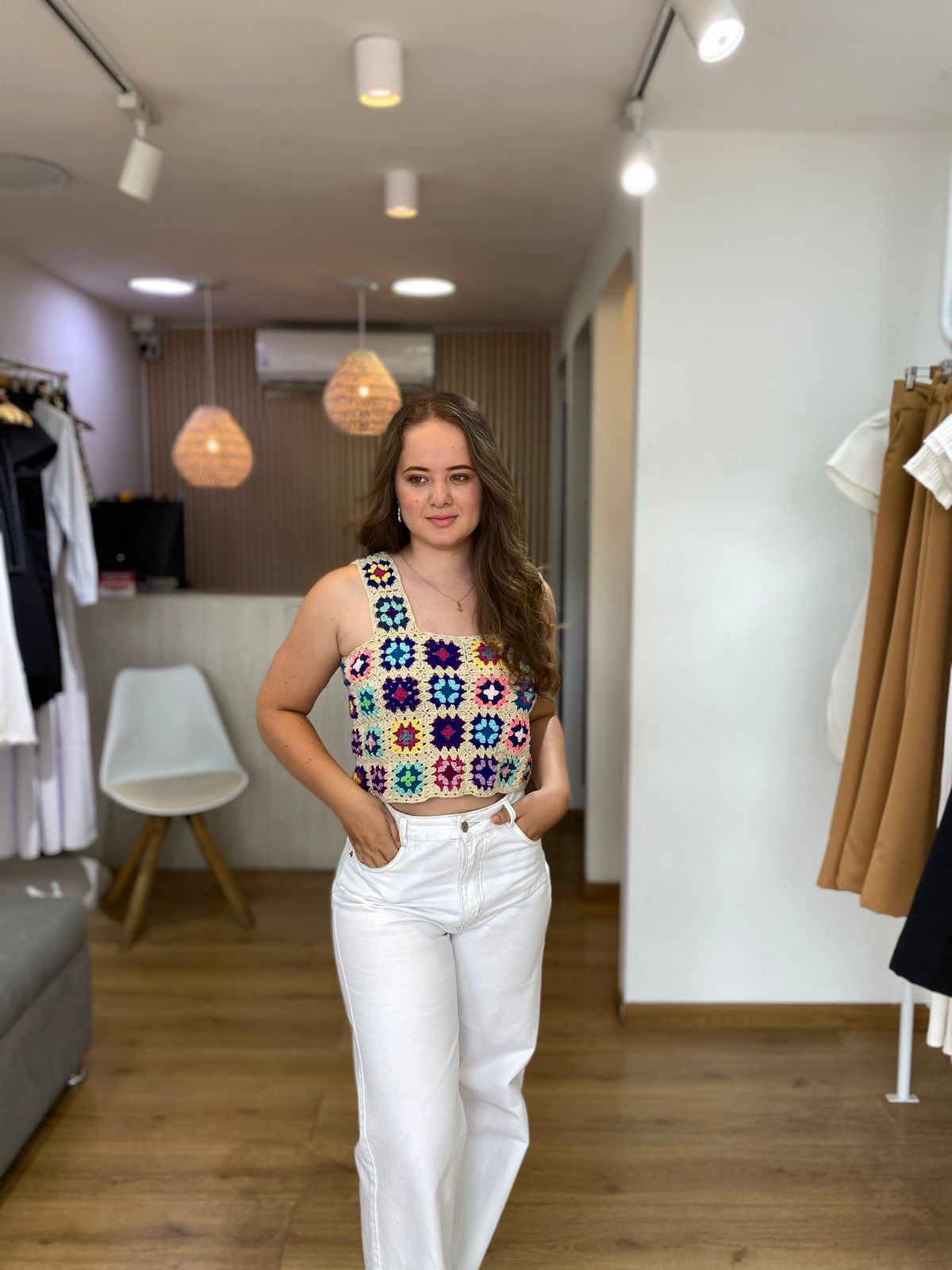Blusa de tejido con diseño floral en distintos colores, ideal para un look casual durante el verano.