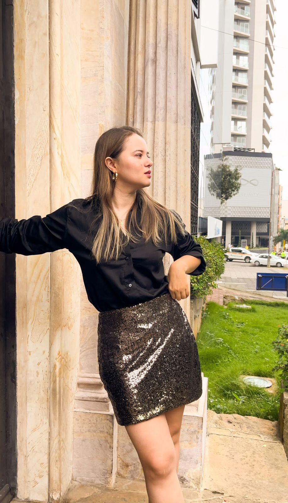 Falda formal dorada con lentejuelas, ideal para eventos y celebraciones.