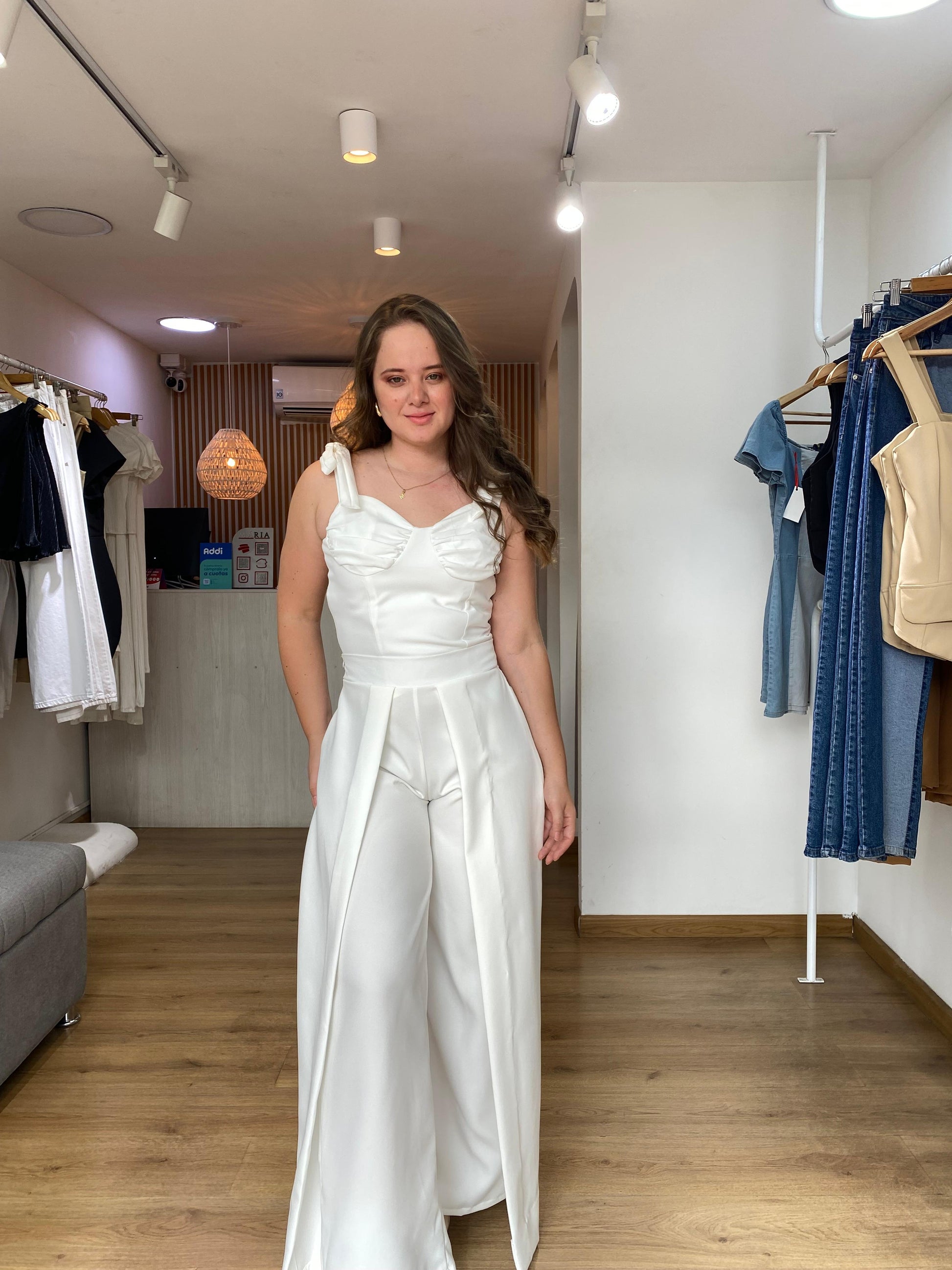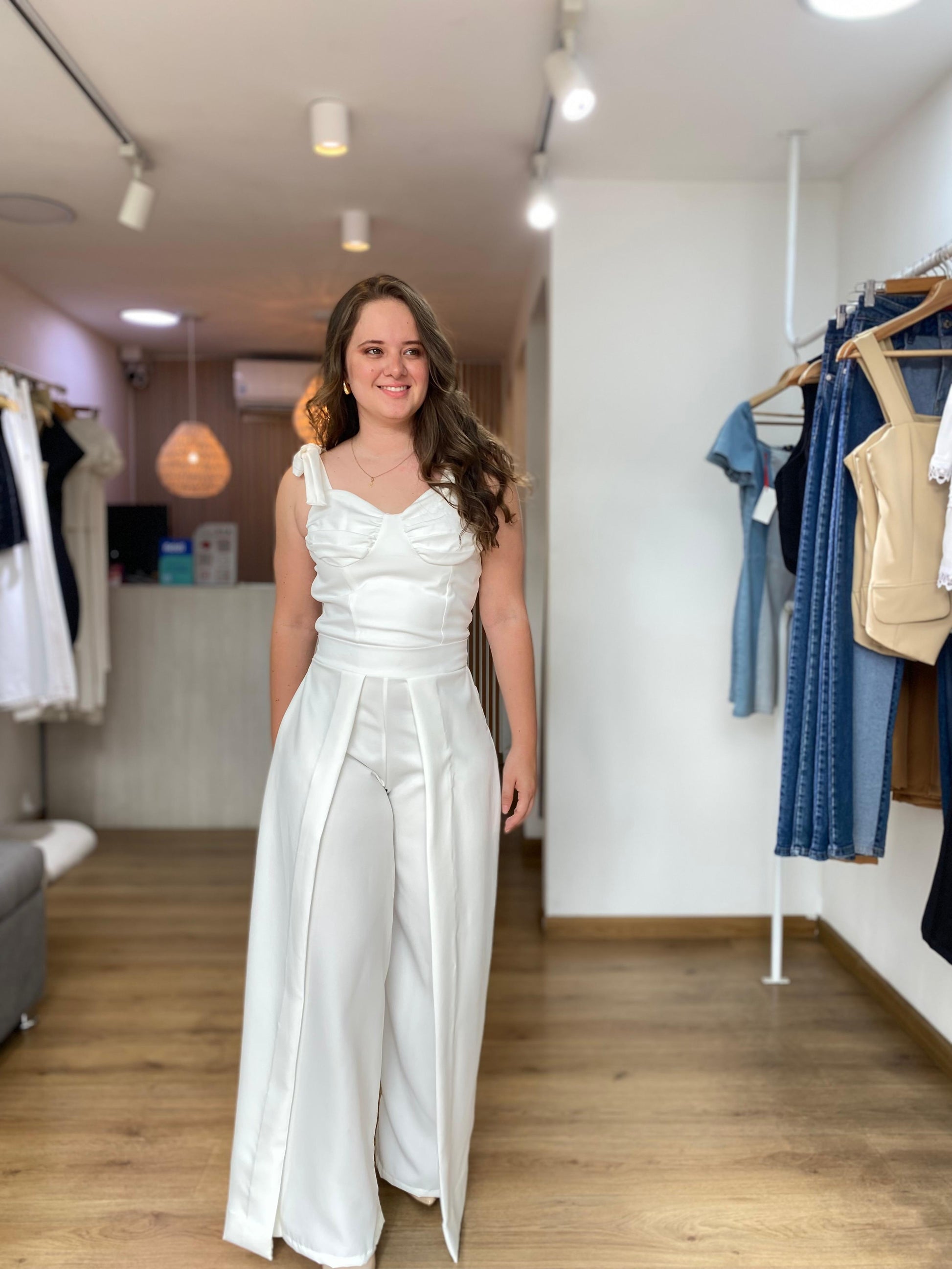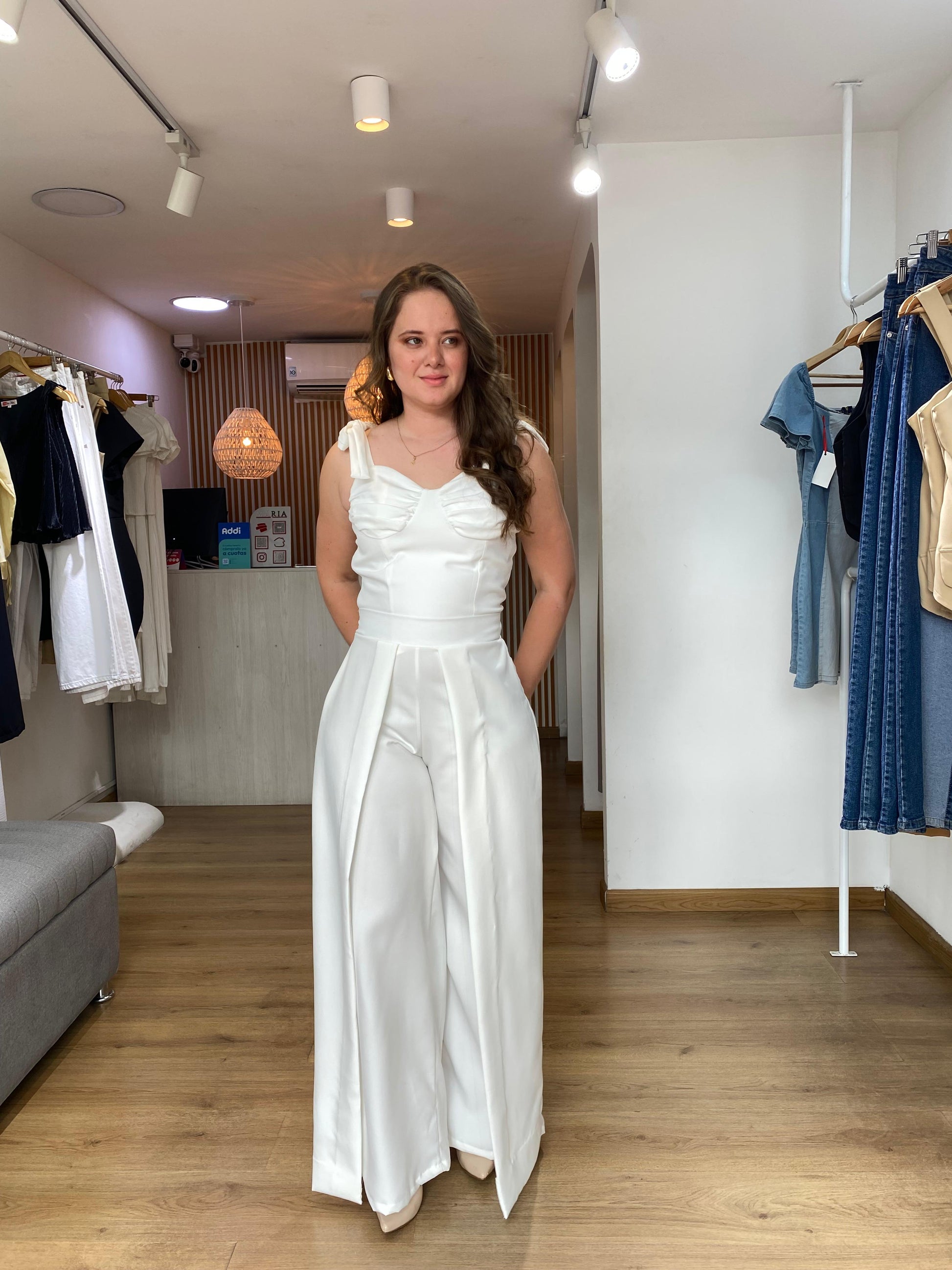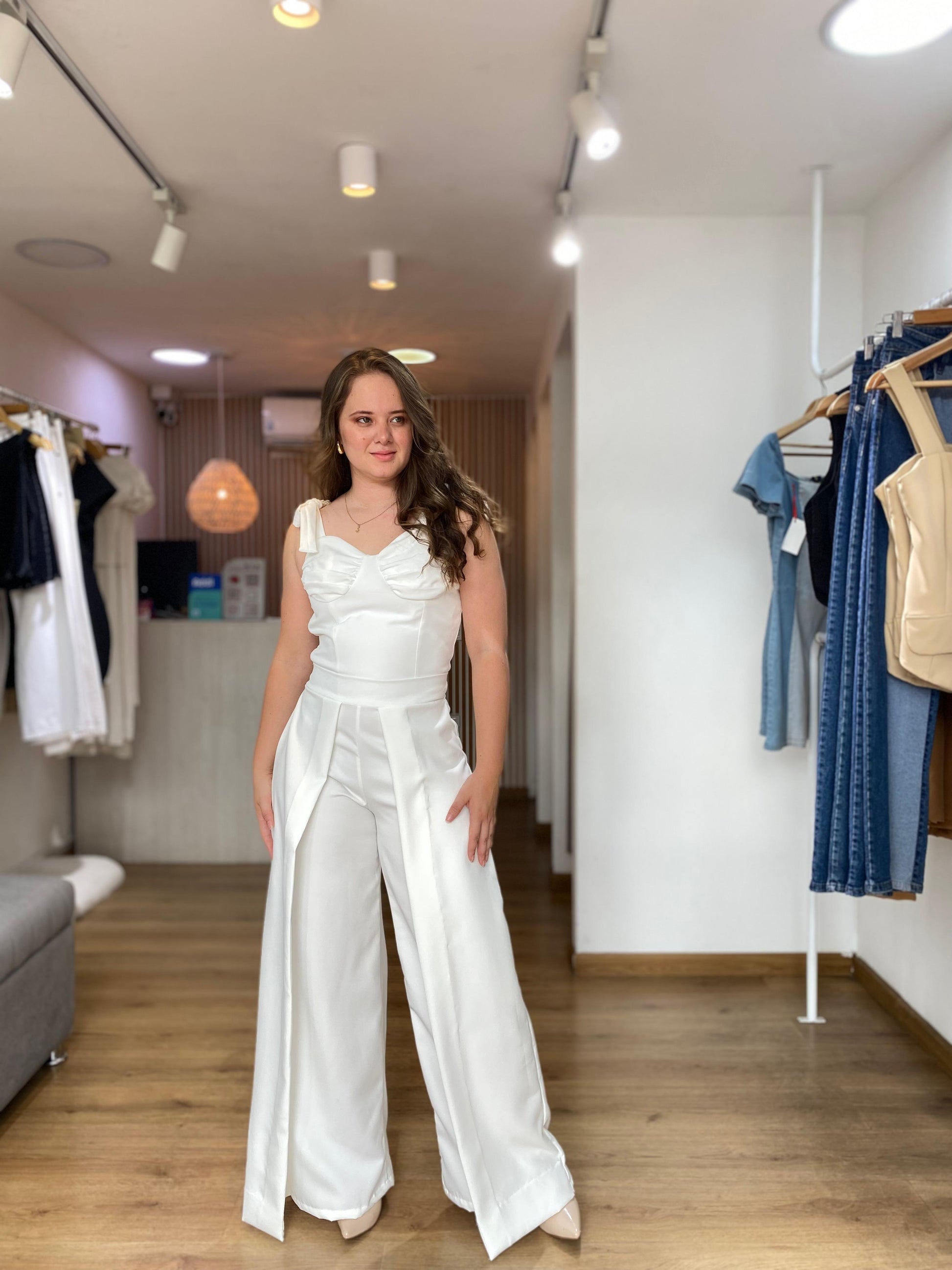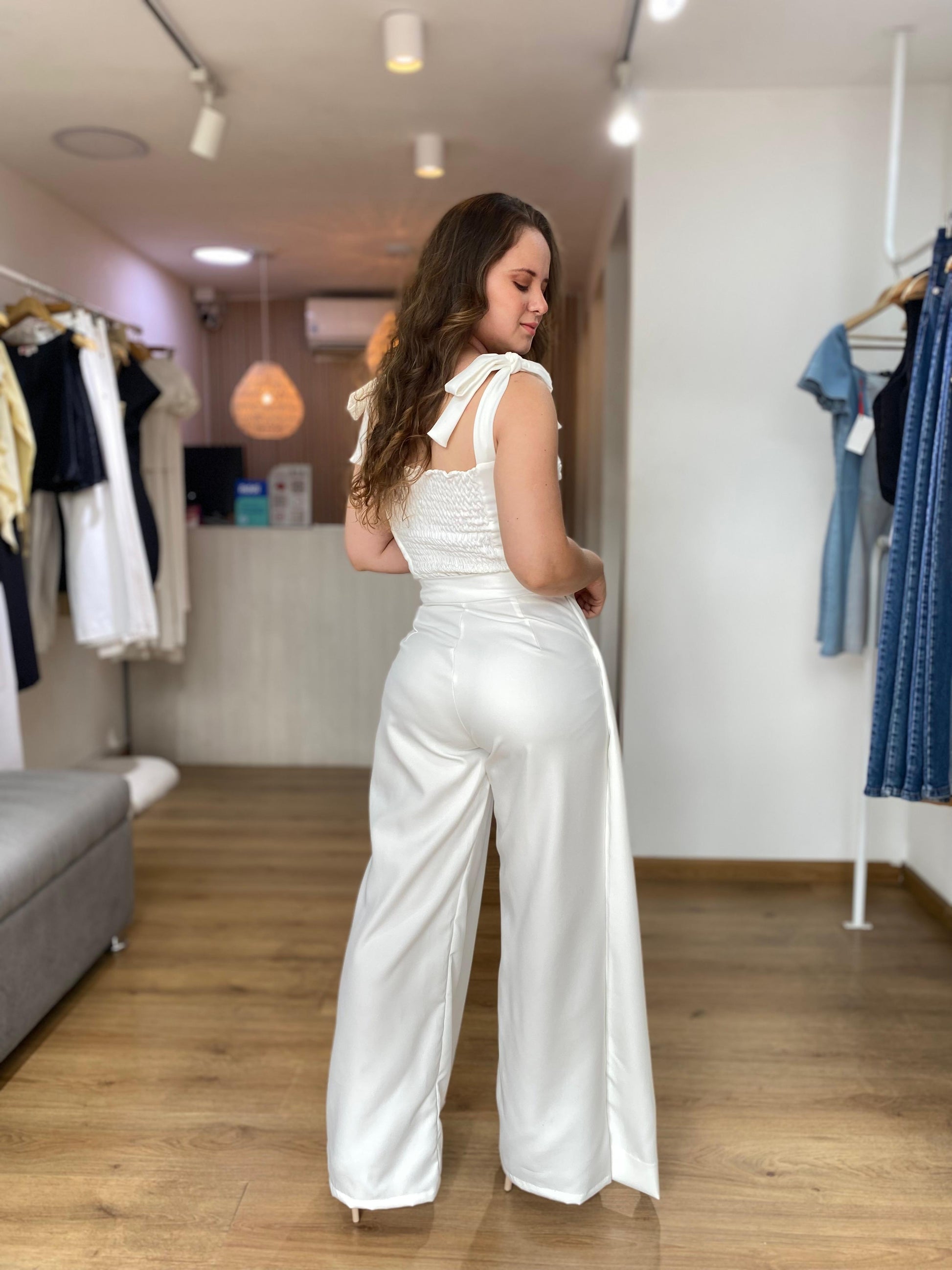 Pantalón de vuelo en tono marfil, ideal para ocasiones formales como grados, bautizos y confirmaciones.